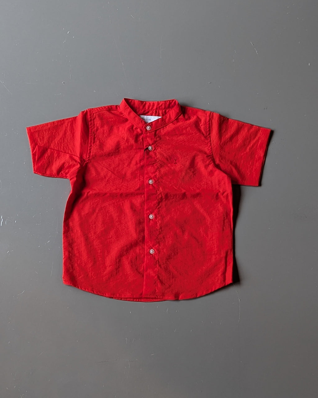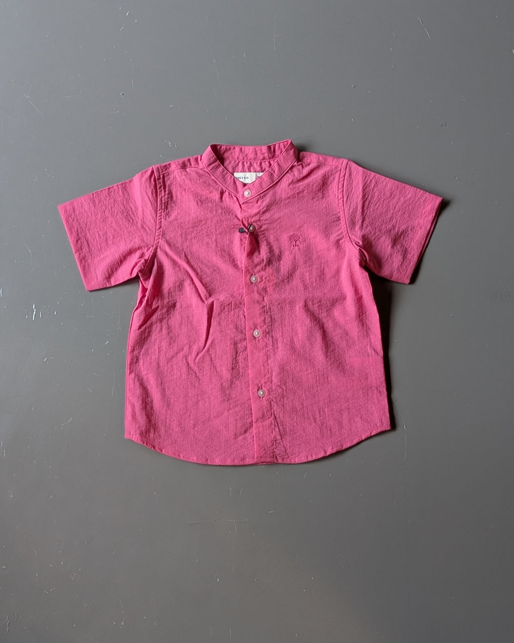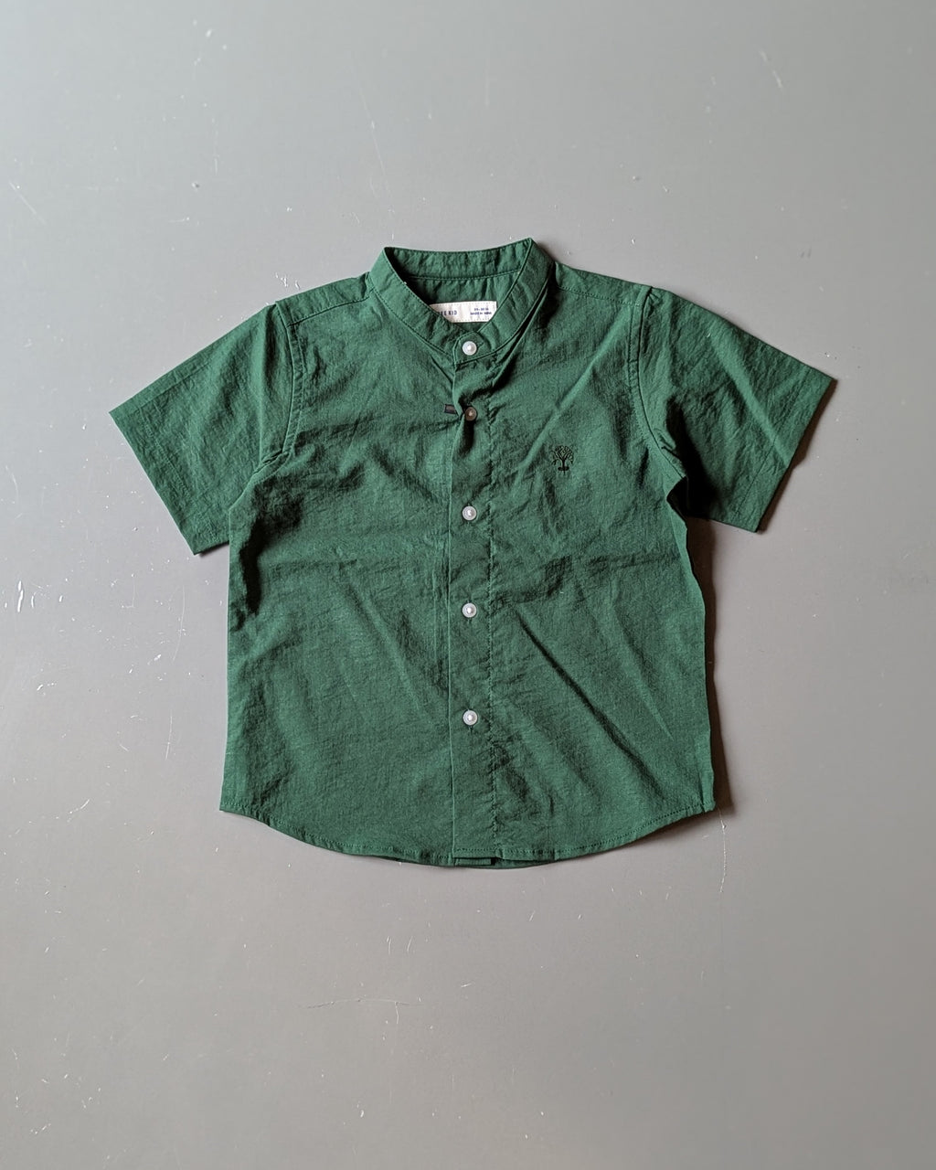 Style: The shirt has a stand-up or band collar (also known as a Nehru or mandarin collar), ...