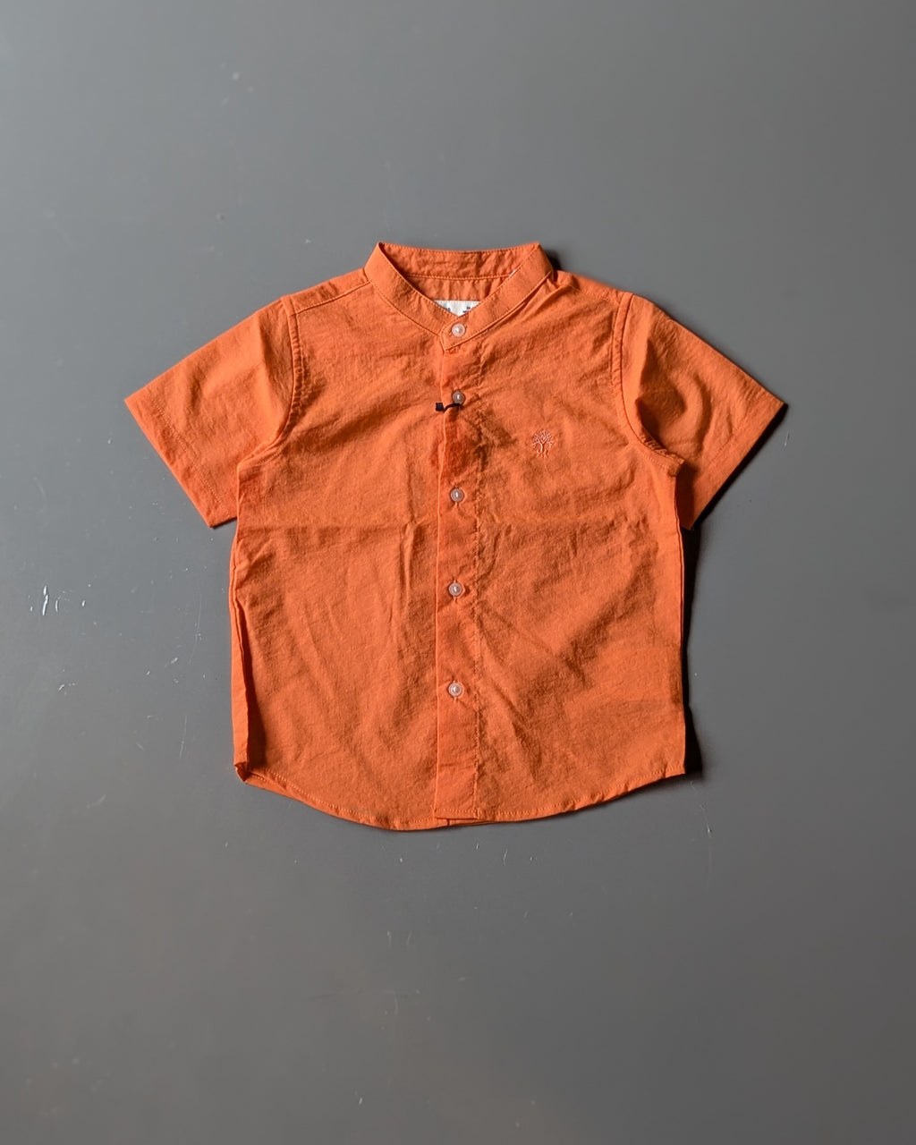 Color: A solid, burnt orange or rust color, with a subtle texture or slubbed appearance.