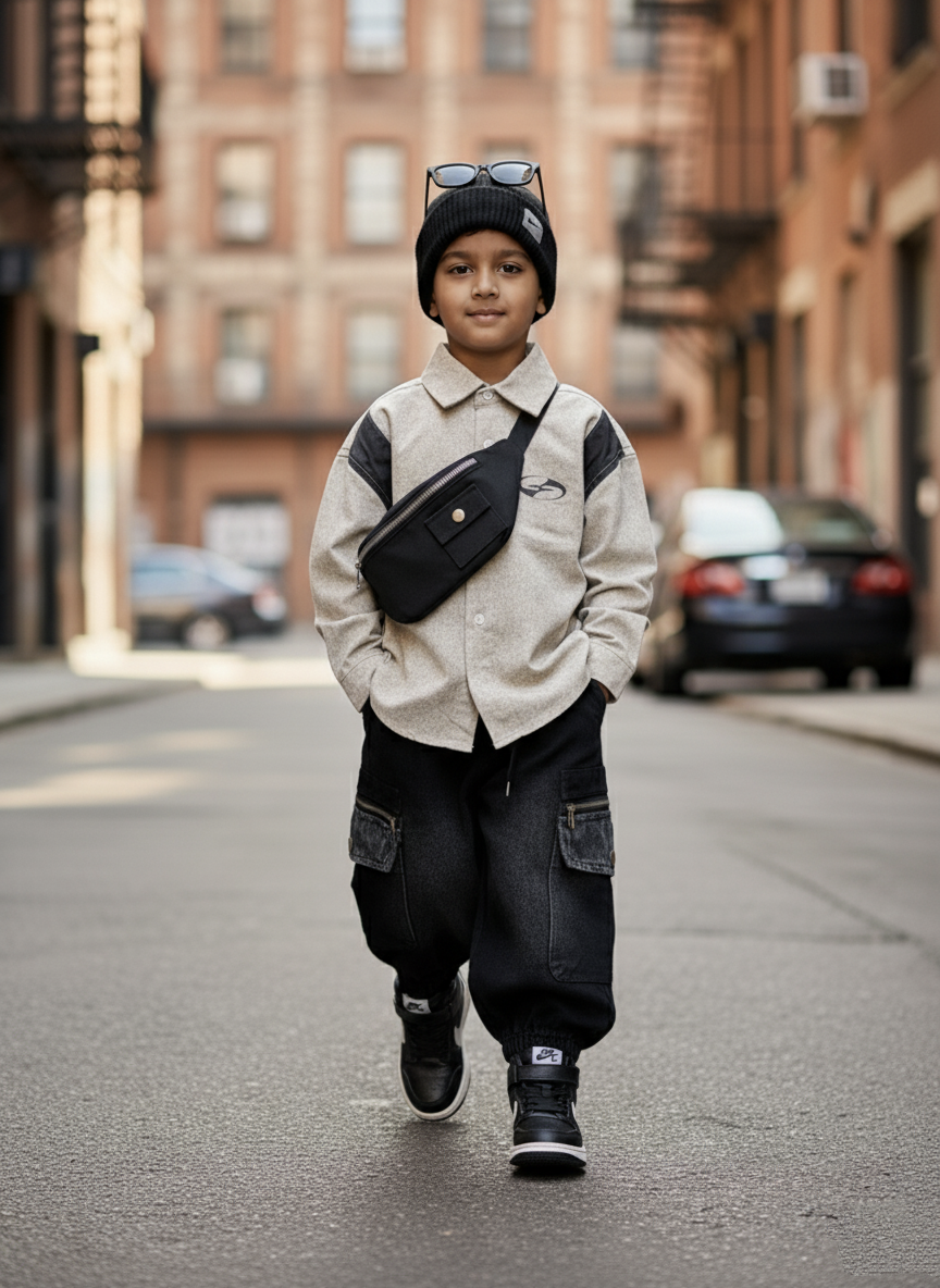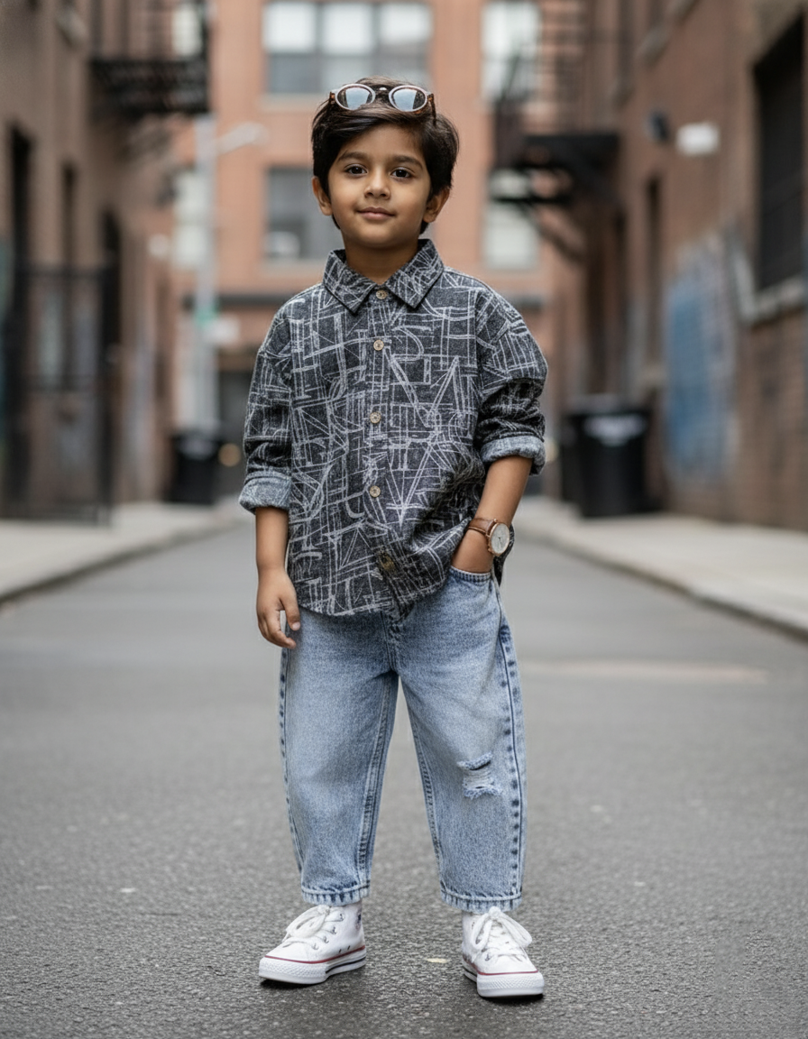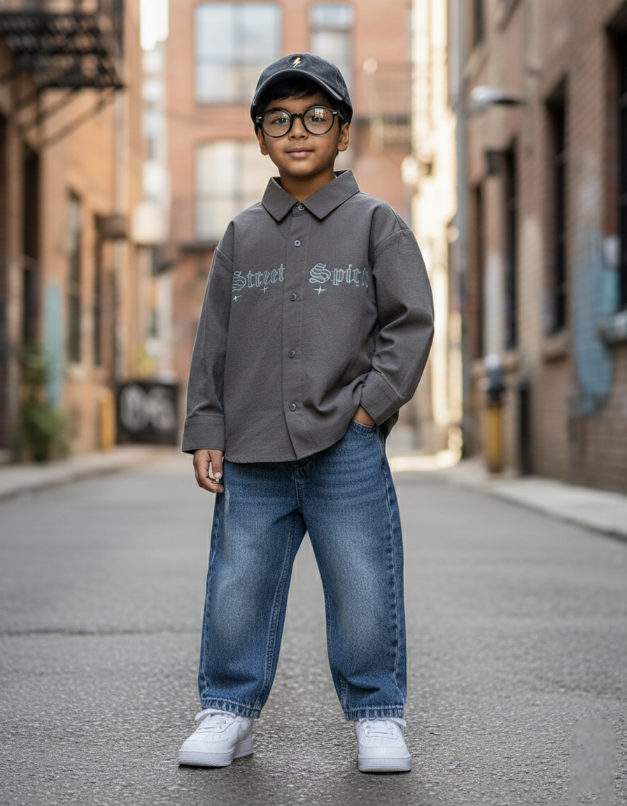 Garment Type: It's a collared, long-sleeved button-up shirt (or a shacket—shirt-jacket—given the slightly heavier look, though it's most likely a shirt).