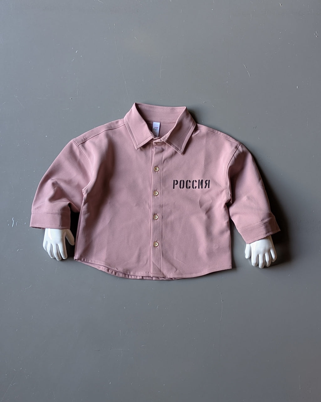 Color: The shirt is a muted, dusty rose or light mauve color.