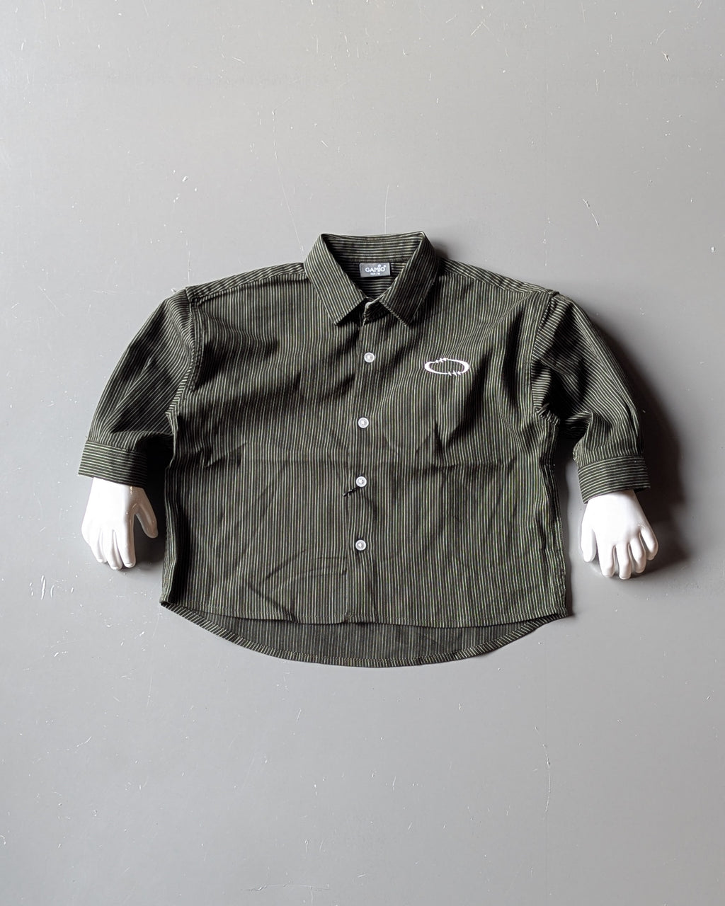 Style: It's a button-down shirt with a cropped fit and a standard point collar.