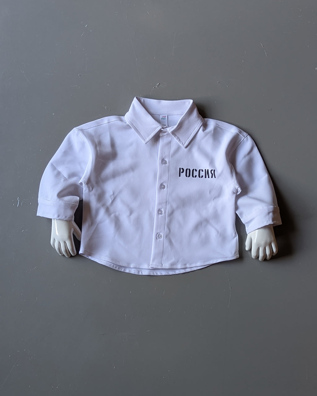 Color and Fabric: The shirt is white, made from what appears to be a lightweight, smooth fabric, possibly cotton or a polyester blend. The material seems to have a slightly crisp texture, which is typical for dress shirts.