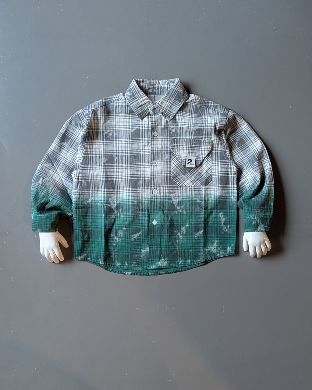 Pattern: It features a classic plaid pattern in shades of green and white in the upper portion.    * Ombre/Dip-Dye Effect: The most notable feature is the gradient or ombre effect where the grey and white plaid transitions into...